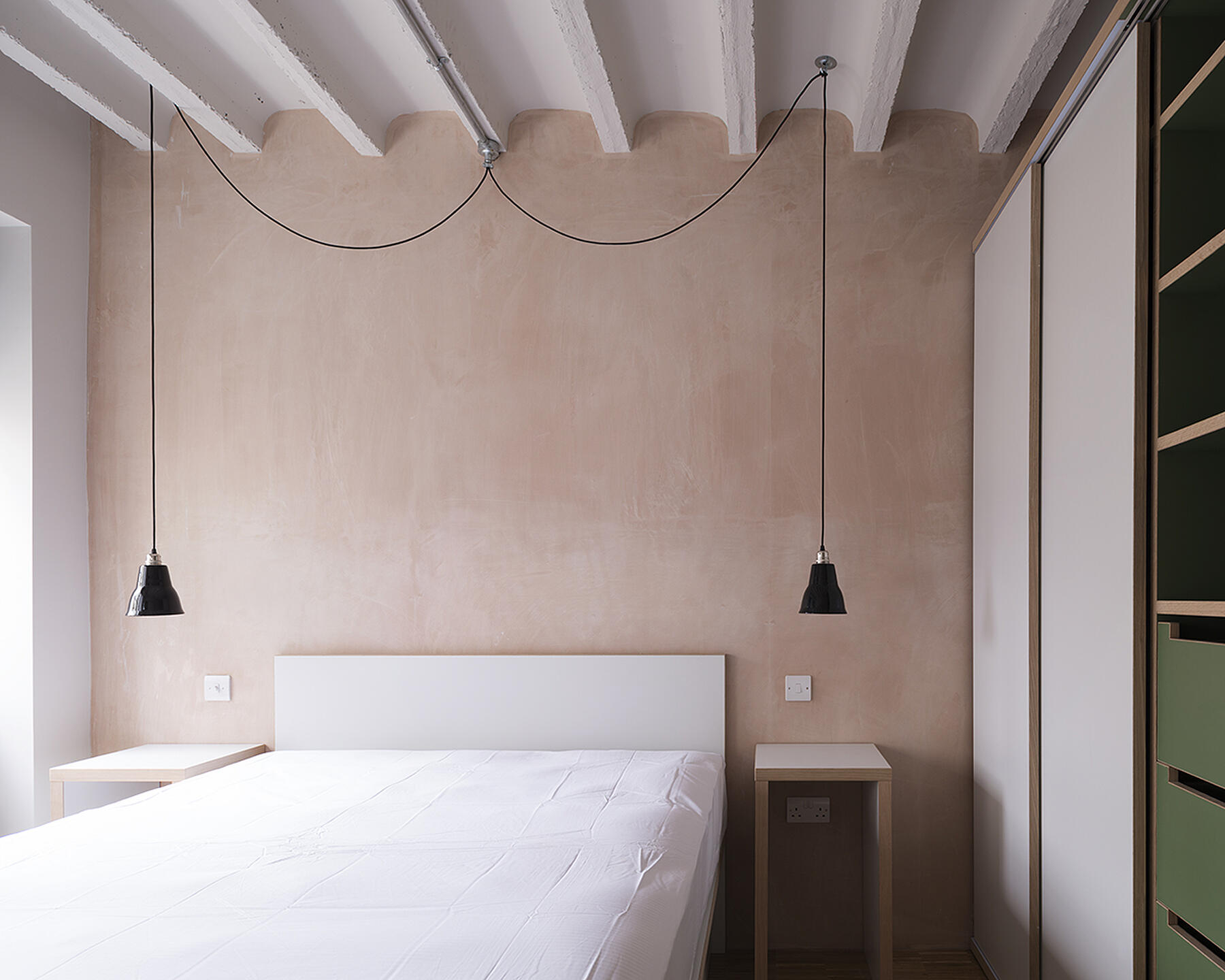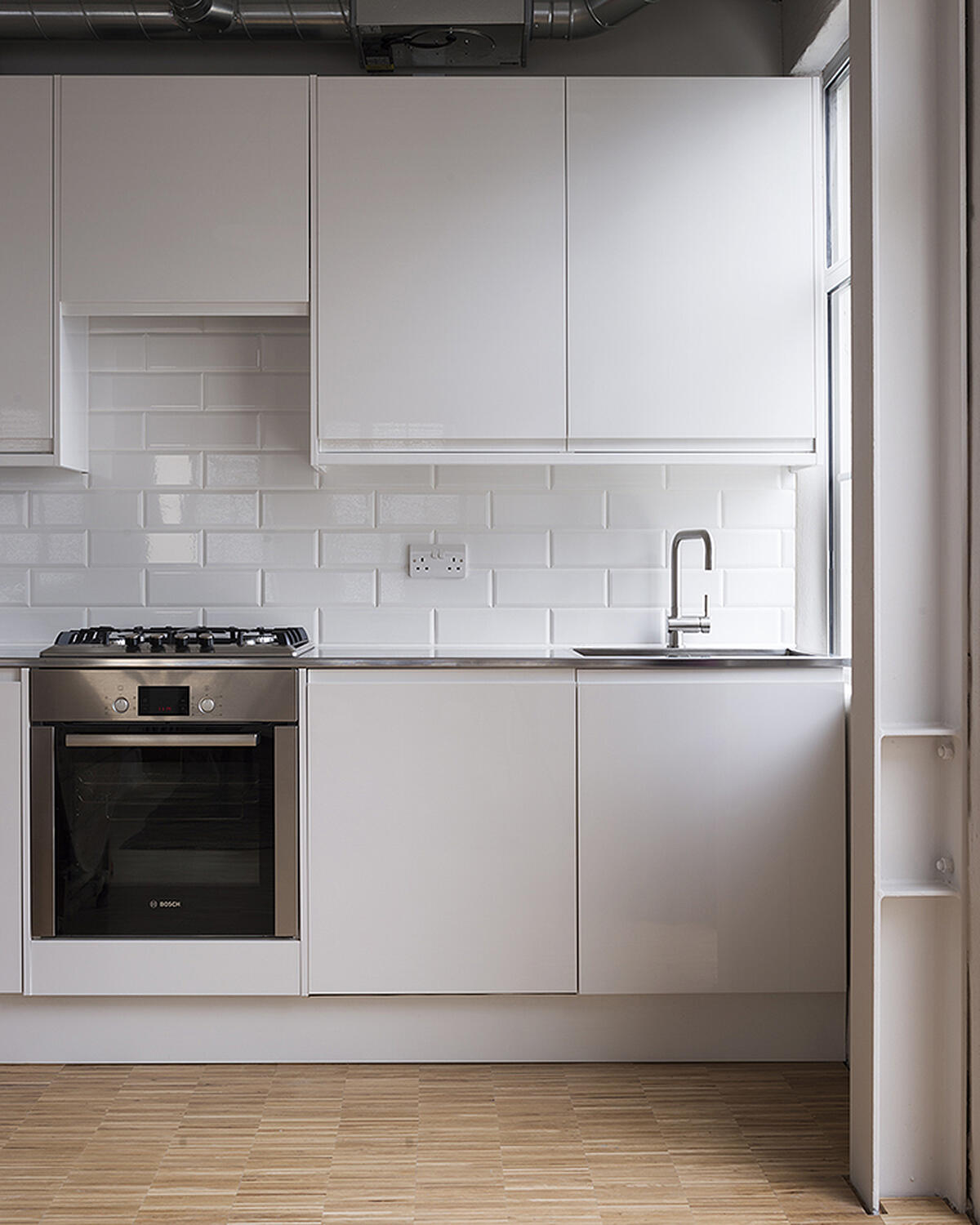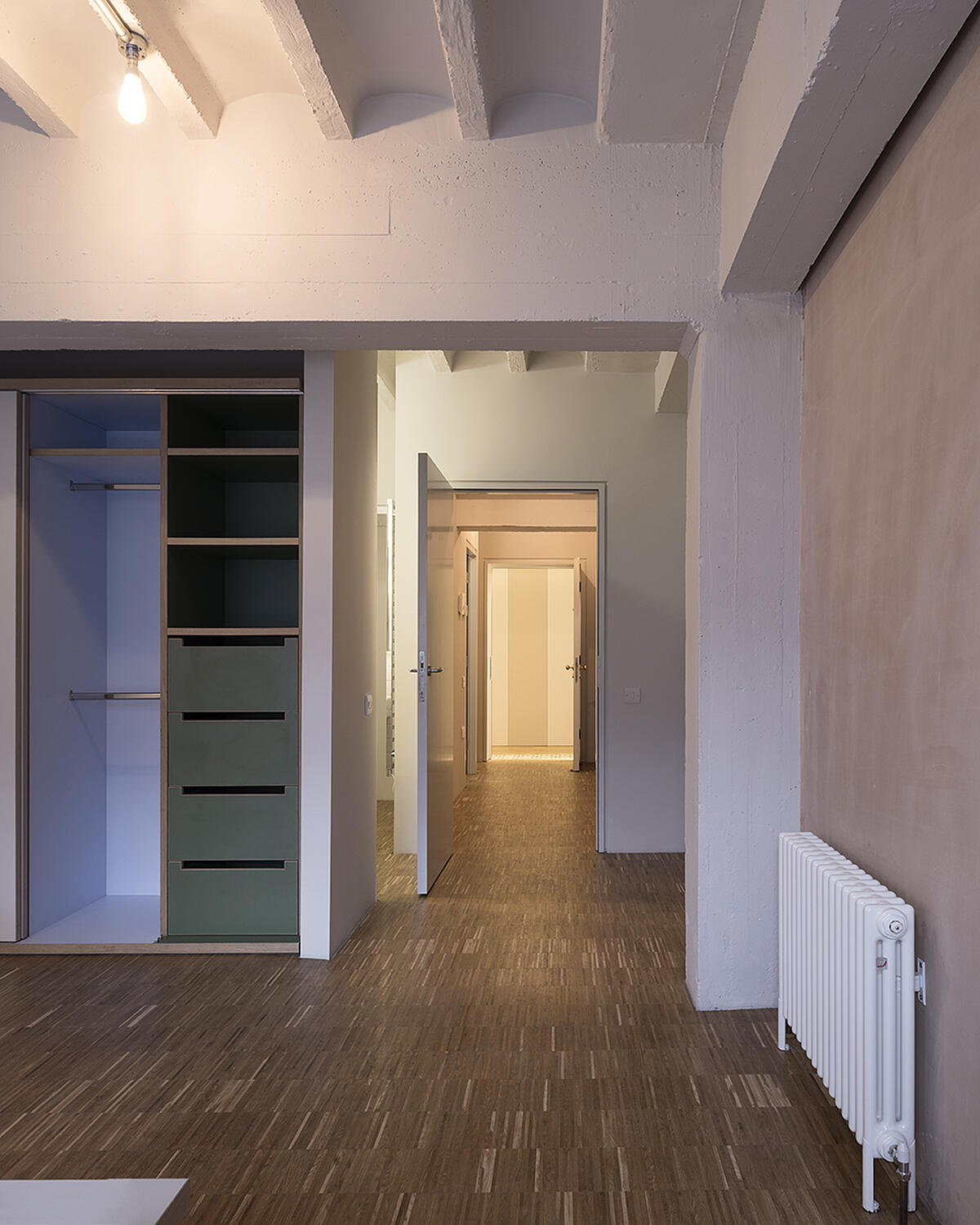 The floor plane was treated homogenously in industrial parquet blocks made from European Oak linking all interior spaces.